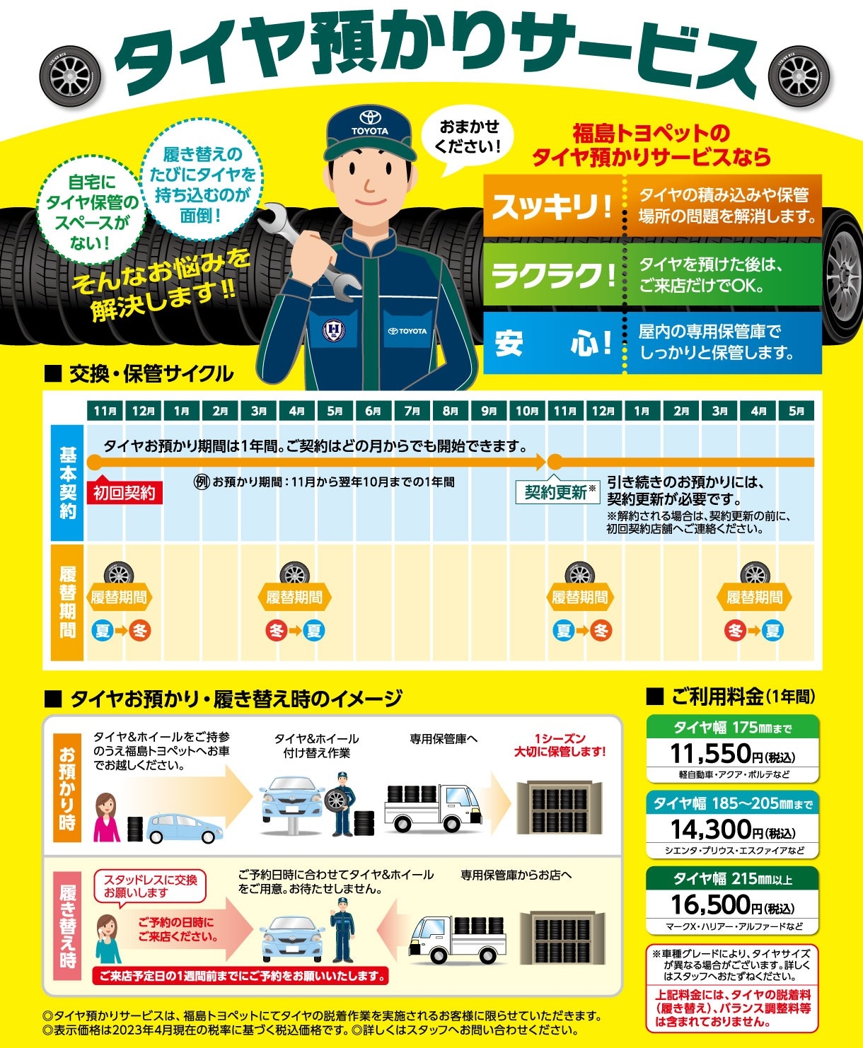 ※チラシ料金にはタイヤの脱着料(履き替え)、バランス調整料等は含まれておりません。