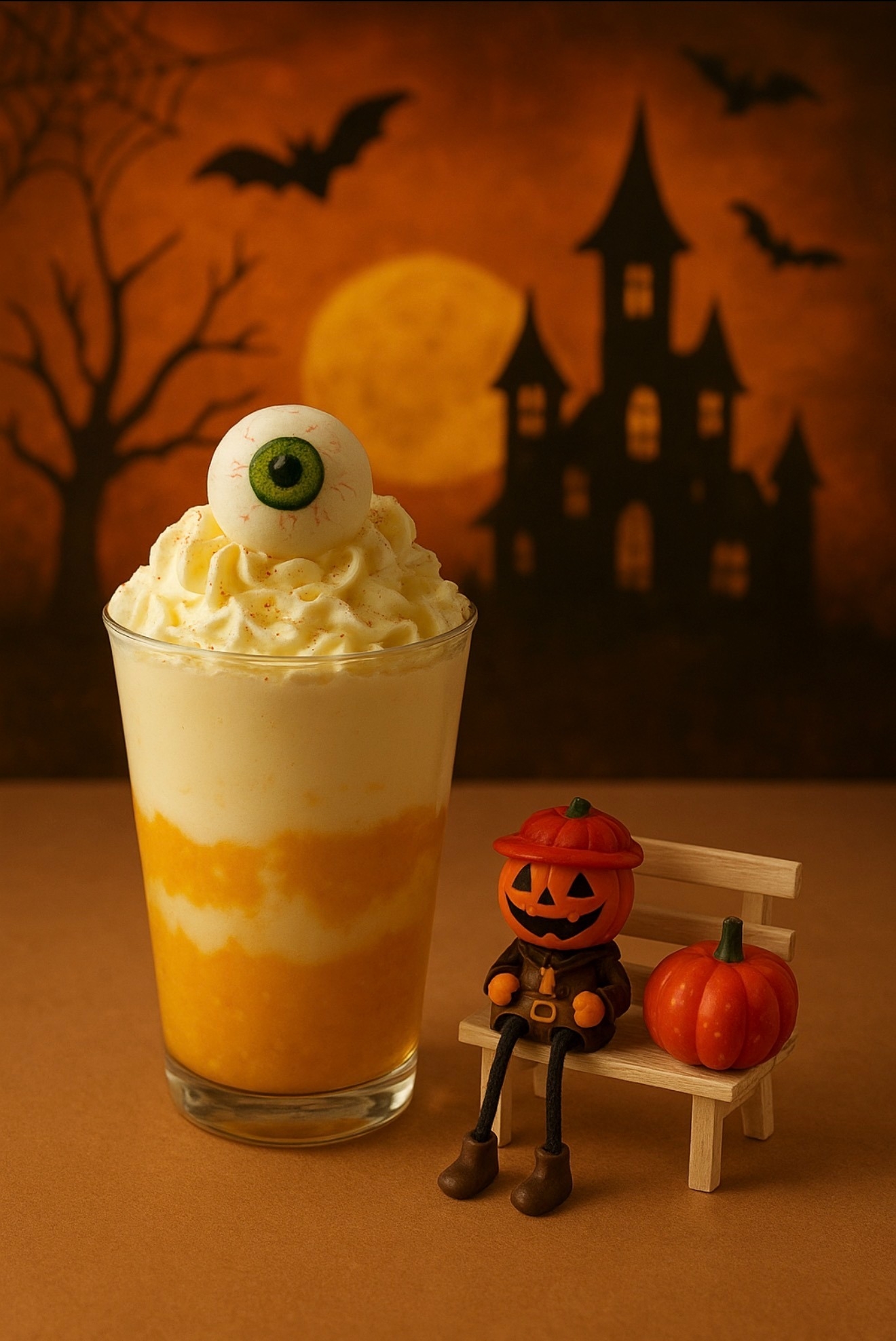 ホイップクリームと目玉マシュマロをトッピングして、ハロウィン仕様にアレンジしました👀👀