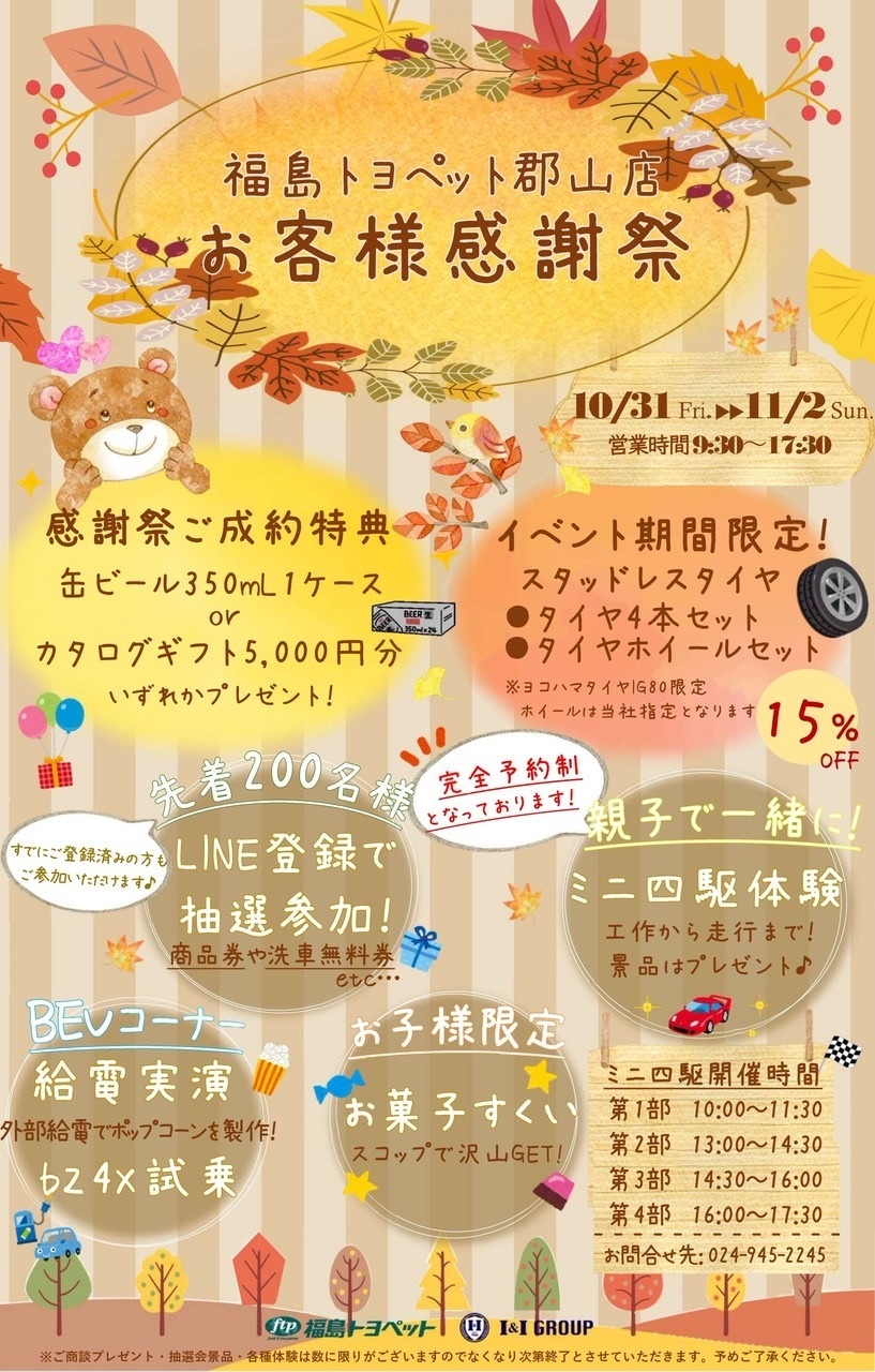 ※本イベントは福島トヨペット郡山店のみの企画です。予めご了承ください。