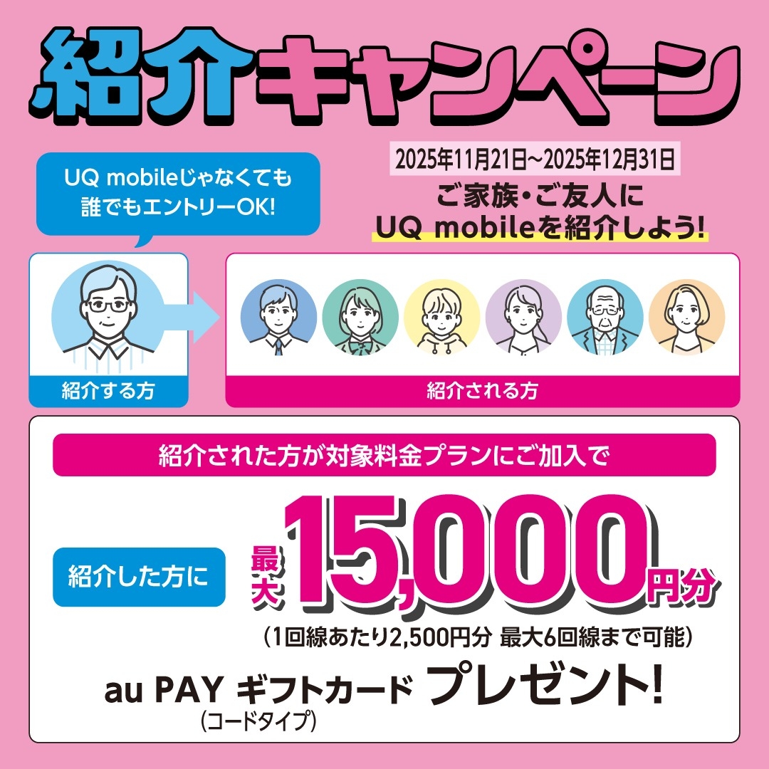 UQMobile紹介キャンペーンが11月21日(金)より開始されました!