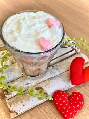 ホイップクリームに浮かぶハートのマシュマロがポイントです👀