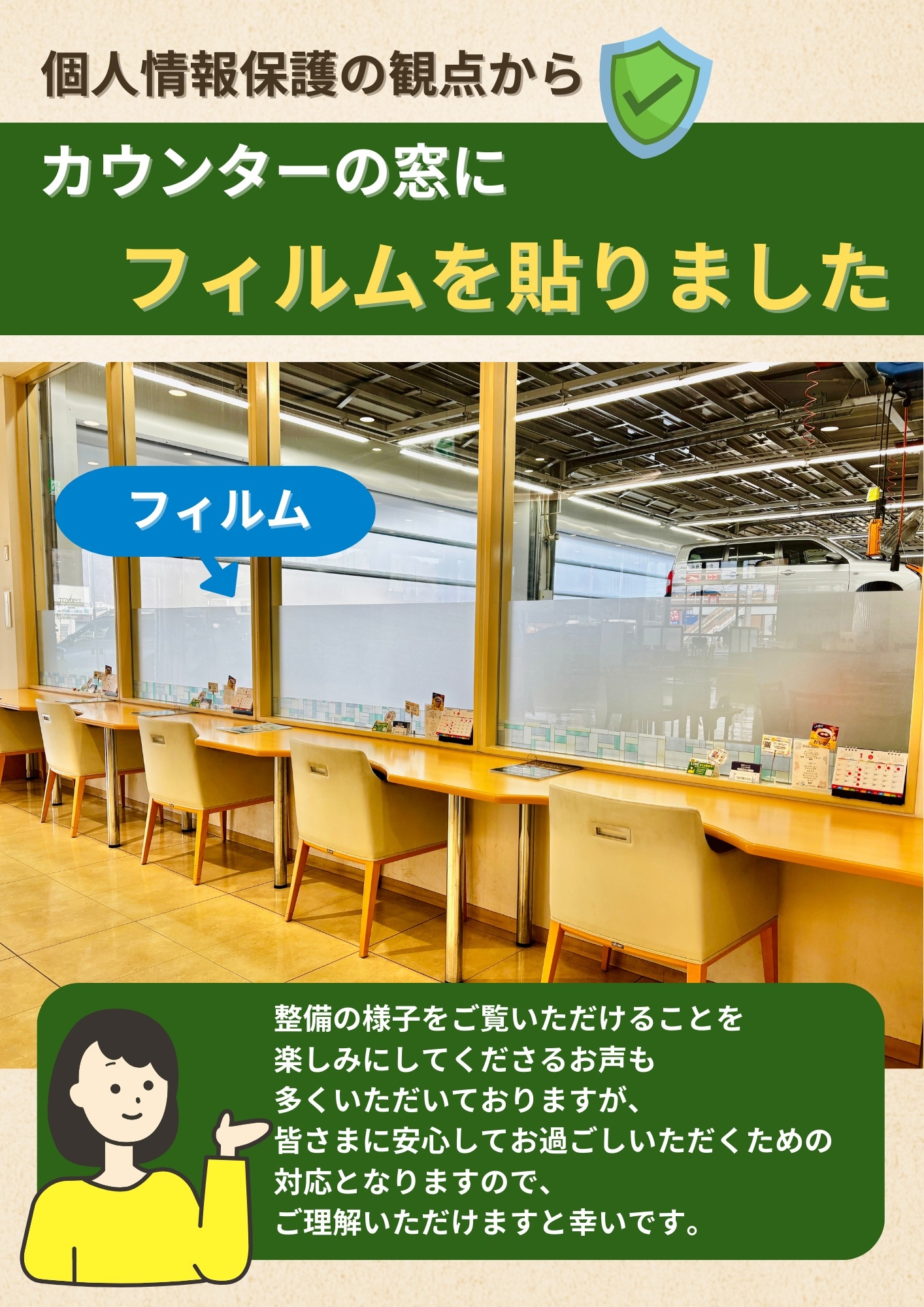 整備待ち合いカウンターにガラスシートを設置いたしました!