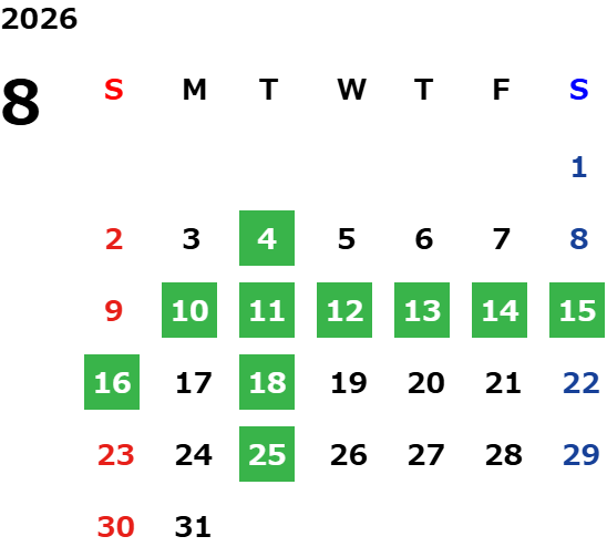 営業日カレンダー